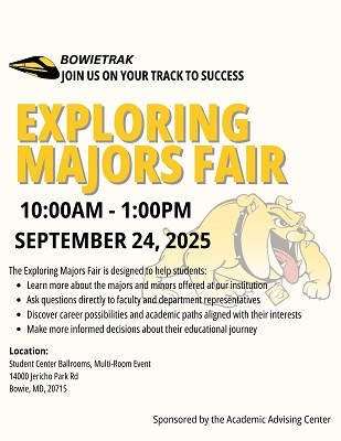 Whether you're a first-year student still exploring or an upperclassman considering a new direction, the Exploring Majors Fair is your chance to discover what’s possible at Bowie State University.