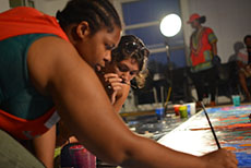 The students and faculty came together at the NextNOW Fest from Sept. 15-16, 2017, to contribute their creative talents to developing the four-panel, hand-painted mural. This collaboration presents an opportunity for students to spark a dialogue and call to action for our communities. The hope is that community-building and healing through art and creative expression can foster joint stewardship of the relationships between the campuses.Student artists from BSU’s Professor Gina Lewis’s New Media: Installation & Public Art Class and UMD’s Dr. Margaret Walker’s Intro to Art Education designed and painted the mural. Students from BSU’s Professor Jennifer White-Johnson’s Photojournalism Class captured the making of the mural through photography, a website and a documentary film.