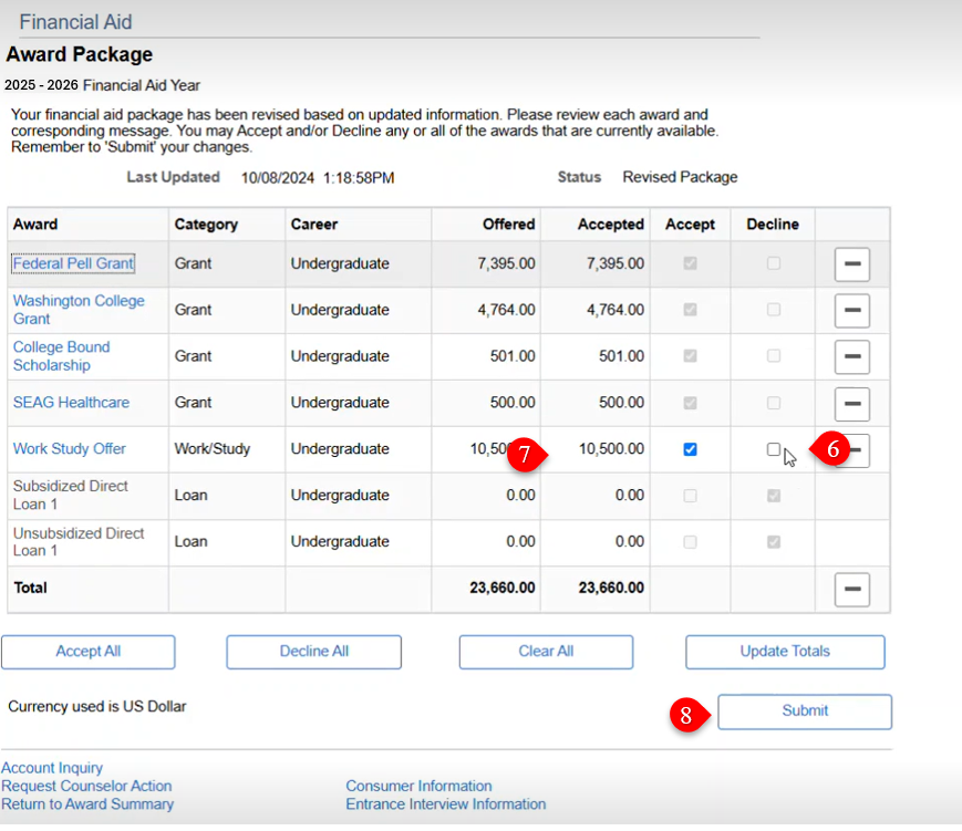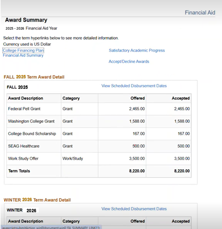 View Financial Aid Accept / Decline Awards