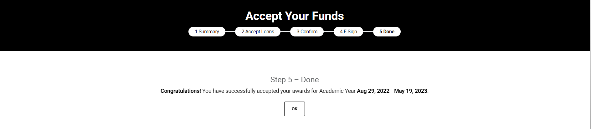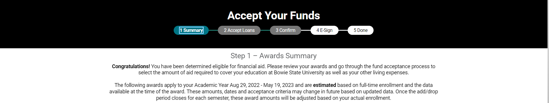 Congratulations, you have successfully accepted your awards for the upcoming academic year.