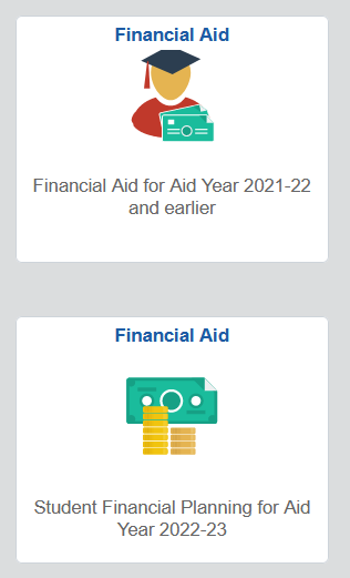 - Select the Financial Aid – Student Financial Planning for Aid Year 2022-23 tile.