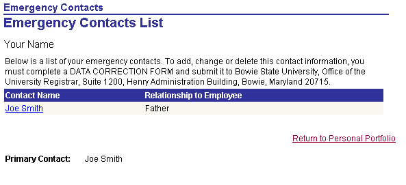 Go to ... Student Information > Personal Portfolio > Personal Portfolio > Contact Information > Emergency Contacts